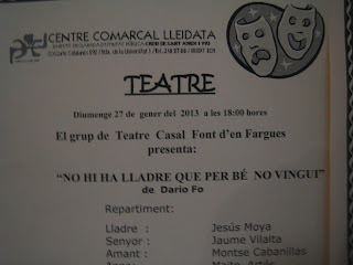 El diumenge passat el nostre grup va fer un "bolo" al centre de Barcelona, concretament al centre Lleidatà on ja fa molts anys que tenim la tradició d'anar a representar algunes de les nostres obres.